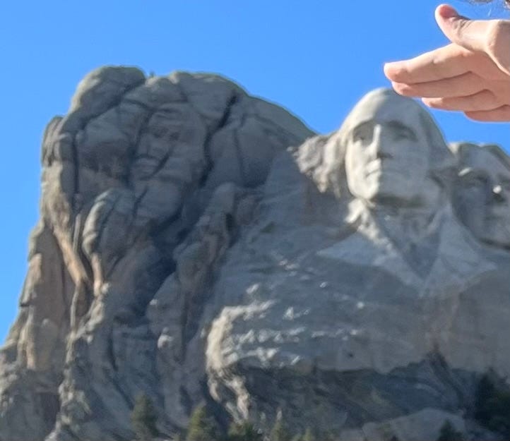 But, there’s always more to the story—to this one and everyone’s. A treaty signed at Fort Laramie, where we stood hours before, promised the Sioux and Arapaho Nations space in the Black Hills if they relinquished their other lands. The treaty, it turns out, was not as good as Black Hills gold. Once discovered, white settlers poured into the promised lands despite the promises. What followed was one more bloody and brutal chapter in American history. Treaty violations were nothing new to the Sioux. But carving out four US presidents to permanently preside over their sacred space?